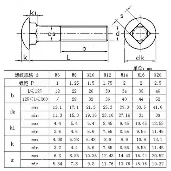 ASTM A307 Stainless Steel Hex Bolts And Nuts M5 Carriage Coach Bolts